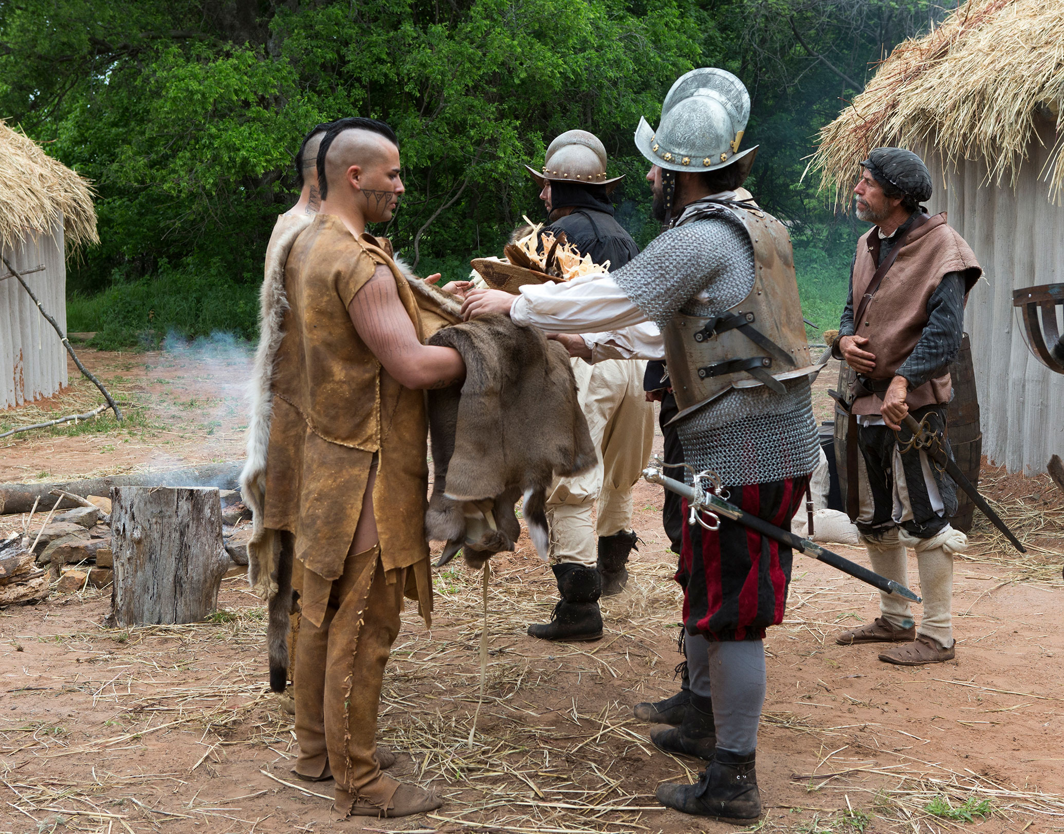 In December of 1540, the Spaniards arrived in Chickasaw territory. A reluctant relationship was formed between the two groups. However, as his reputation would suggest, de Soto began to assume unjustified authority over the Chickasaw and began to disrupt their way of life.